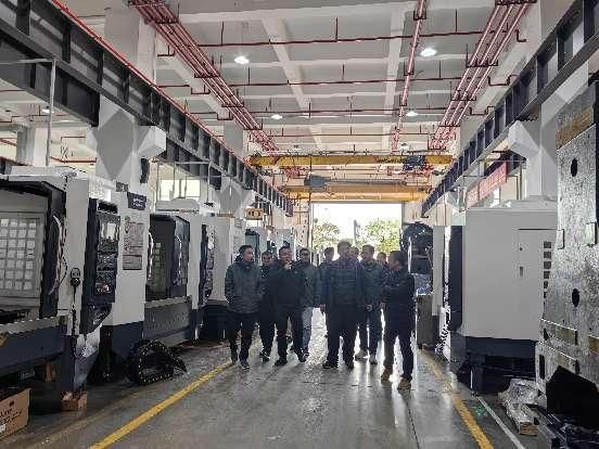 在创世纪集团,孙振忠一行参观了企业车床生产线,与集团人力行政总经理张伟、创世纪商学院副院长刘国芳等进行座谈,就人才培养、产教融合、就业拓岗等内容进行了深入交流,并就奋楫班开设、研究生实习基地建设等具体工作达成初步合作意向。