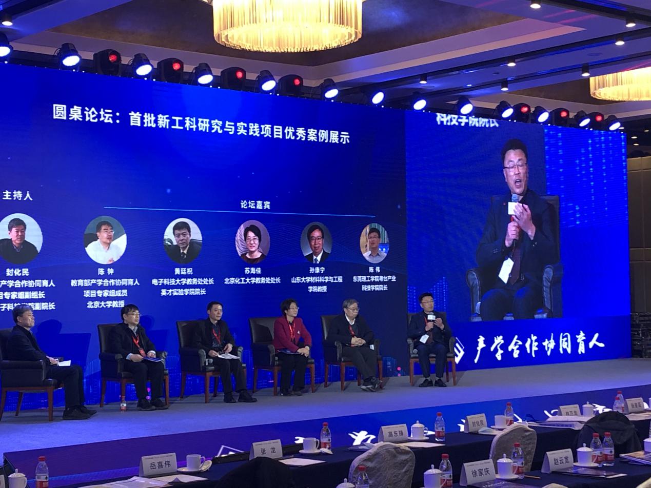 圆桌论坛环节由教育部产学合作协同育人项目专家组副组长、北京电子科技学院副院长封化民主持,参加者还有教育部产学合作协同育人项目专家组成员、北京大学陈钟教授,电子科技大学、北京化工大学、山东大学相关负责人等。
